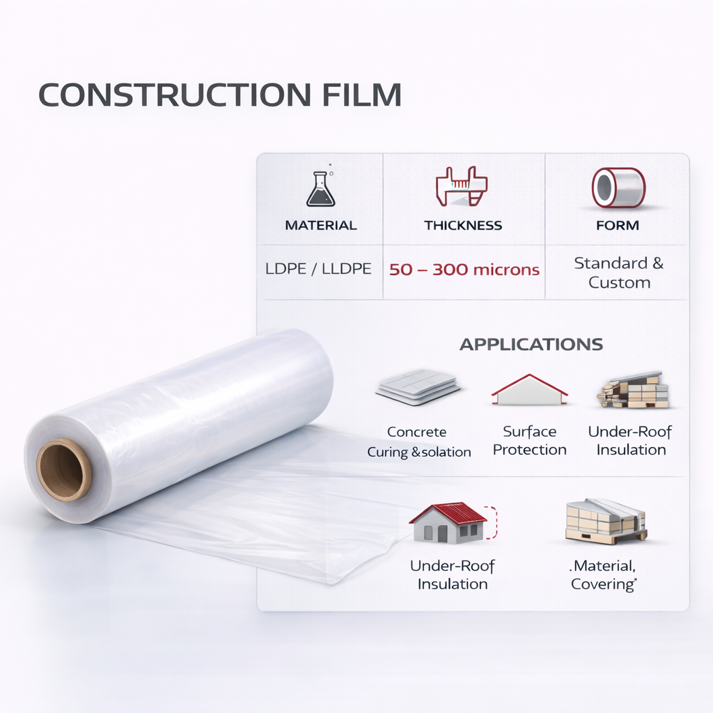 İnşaat Filmi , inşaat ve yapı sektöründe geçici koruma, izolasyon ve zemin kaplama uygulamaları için geliştirilmiş yüksek dayanımlı teknik film çözümüdür.